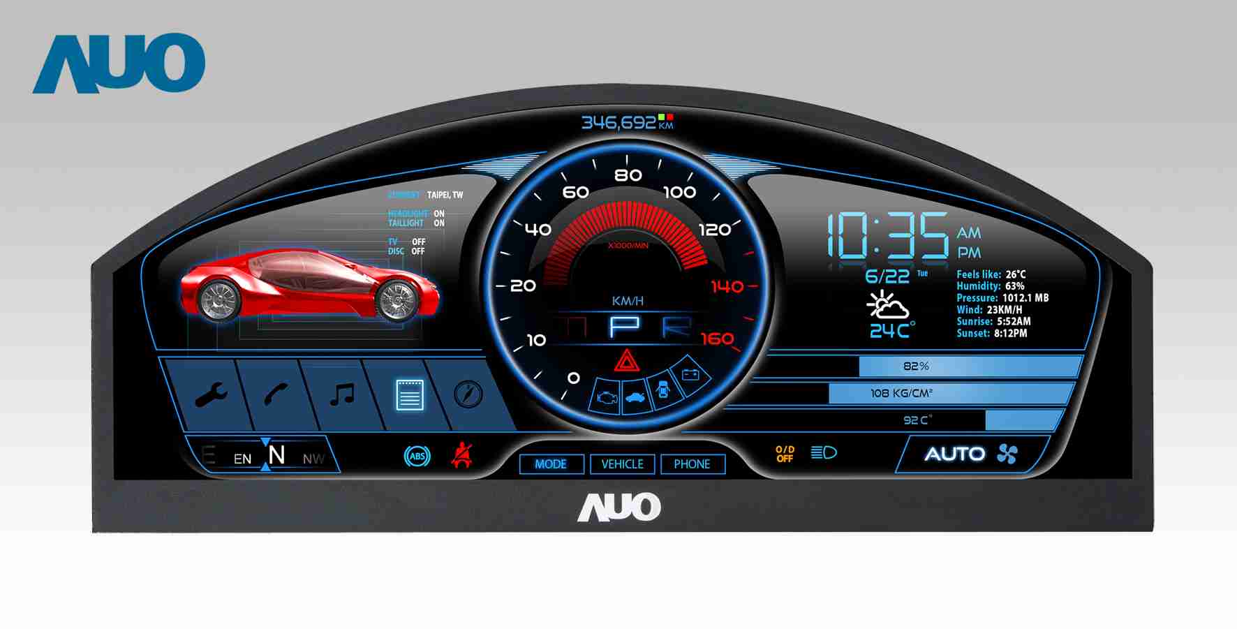 尊时凯龙 12.3吋超高解析异型切割车用面板,,,拥有流线外观及精细画质