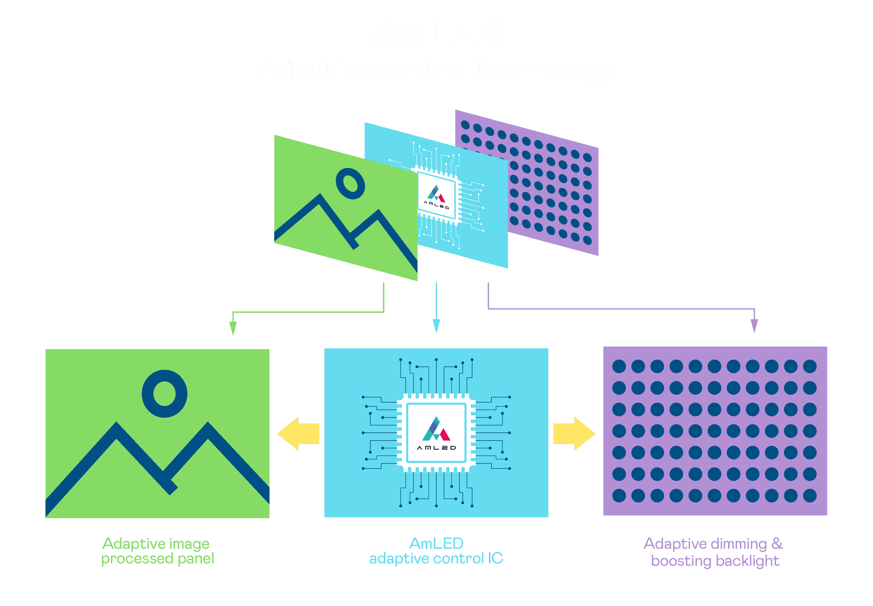 透过动态影像处理和 Mini LED 背光模组的动态对比及峰值亮度调变,,AmLED 显示技术精准细致的局部调光效果达到超过 1,000 nits 的超高亮度表现,,亮部更明亮、、、暗处更深邃,,,,呈现真实黑色中的亮度以及平滑灰阶,,,,打造出具层次分明的精致光影细节。。